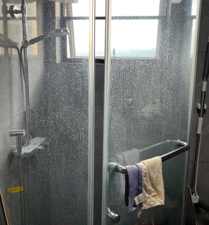 但是总共玻璃浴室的门上透澈是水垢,不定时清洁的话,水垢就会越来越厚,临了变成卫死活角。