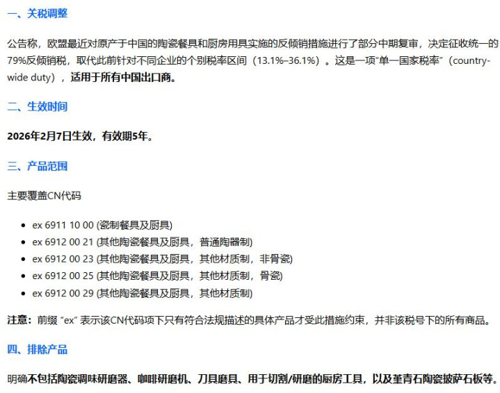 2月6日,欧盟委员会文告:从2月7日起,对总共中国出口的陶瓷餐具和厨房器具谐和征收79%的反推销税。这个数字,说它是“史上最狠”绝不夸张。