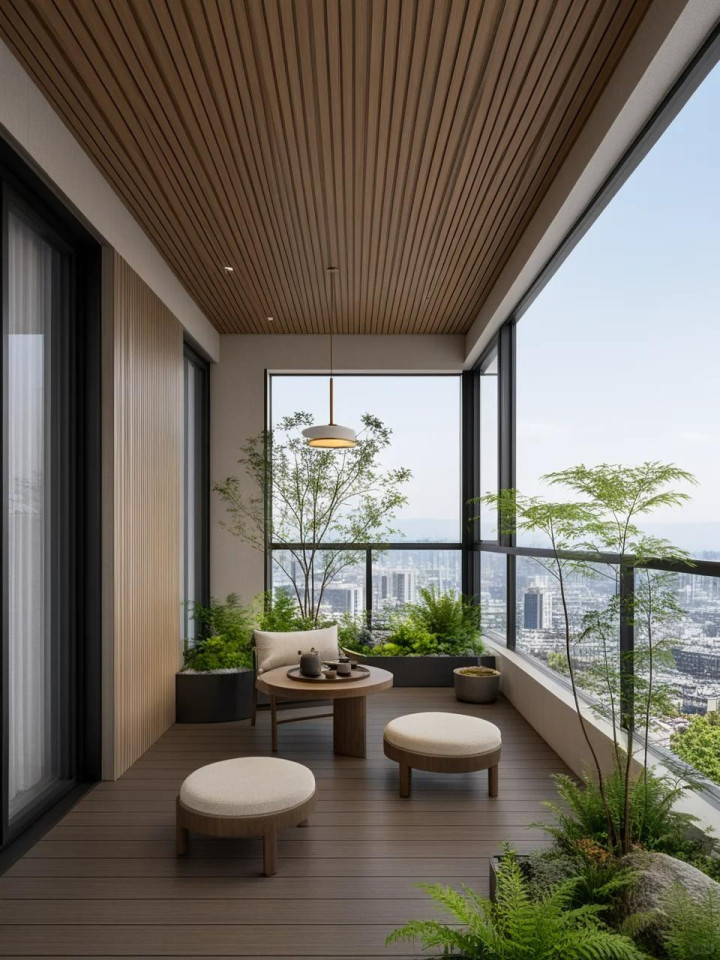 晾衣不错,但不必挂满;喝茶不错,但毋庸整套茶席。高档的阳台,懂得作念减法。