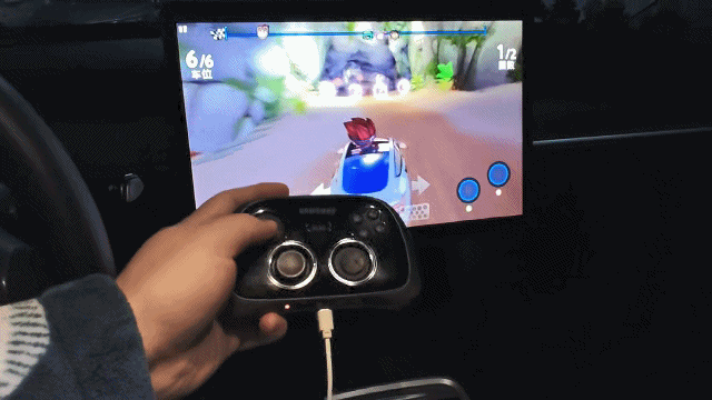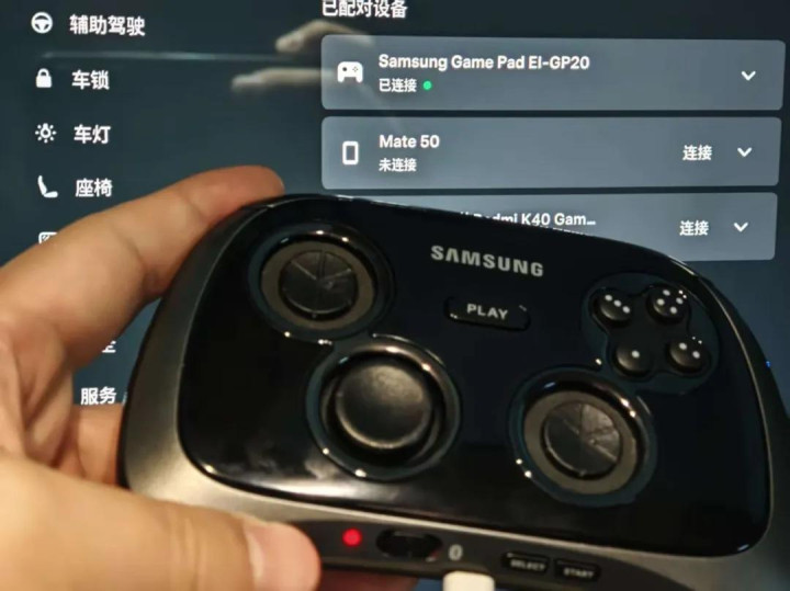 我买来是为了玩特斯拉游戏的,之前一直思在车上搞个手柄,怒放蓝牙能搜到“Samsung Game Pad El-GP20”,配对为止然在车机游戏界面看到“1个手柄已贯穿”的指示,网友诚不欺我。