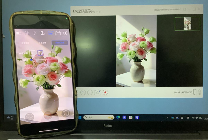 3、承接见效,手机录像头的画面就走漏在电脑上啦!