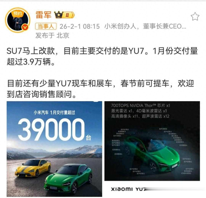 第一代SU7在2月10日下线终末一辆车,一共录用了36万多辆,当今卖的叫YU7,其实等于SU7的小改款,不算新车,全新一代SU7要比及2026年4月才上市,时代一都更新,包括自研的四合一域放手器、高压平台重新筹算、门把手按新国标转机、电板测试情势卓绝1000项,比国度尺度更严格,易游李肖爽说“远高于新国标”,这话听着有点虚,但脚下电板事故频发,用户如实顾虑,多一层保险老是好的。