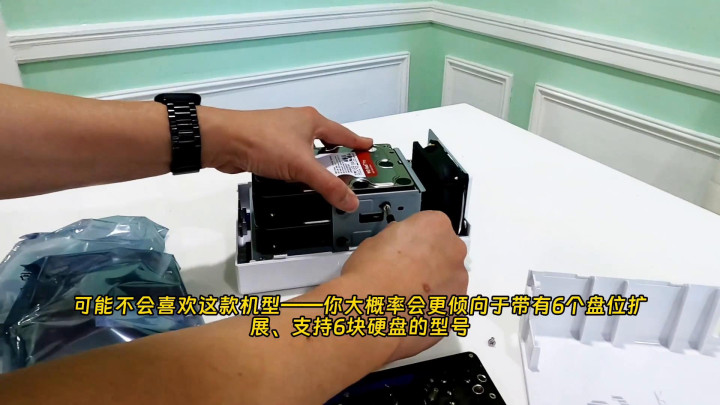 ·硬盘装配到位后用螺丝固定好,每块硬盘需要4颗螺丝,就地附赠了8颗螺丝,刚好够用。