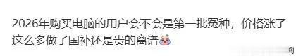 靠近这一波猛如虎的加价潮,耗尽者们的购买欲那是肉眼可见的冷淡。天然2026年头推出了新一轮的“国补”策略,但架不住这加价的势头比补贴还要猛,网友皆在辱弄:“电脑快成奢华了,重叠了国补照旧贵得离谱。”