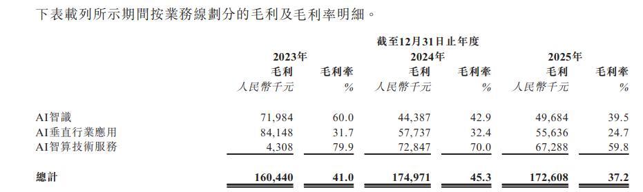 记者正经到,拉万古辰线,分业务看,2025年,华付本领三大板块毛利率均承压。其中,AI智识业务毛利率降幅最大,米兰从2023年的60%降至2025年的39.5%;AI垂直行业欺诈毛利率从2023年的31.7%降至2025年的24.7%;AI智算本领劳动毛利率降从2023年的79.9%降至2025年的59.8%。