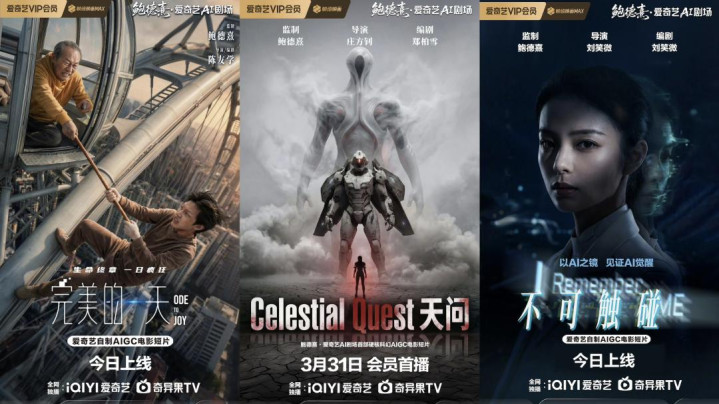 旧年悦享会上,监制、导演鲍德熹与爱奇艺协作,缔造鲍德熹·爱奇艺AI戏院,狡计打造16个AI叙事影片,本年3月,爱奇艺首部AIGC电影短片《天问》谨慎上线,余下15部短片也继续上线,让行业看到了AI技能的跳动和与艺术会通的更多可能。