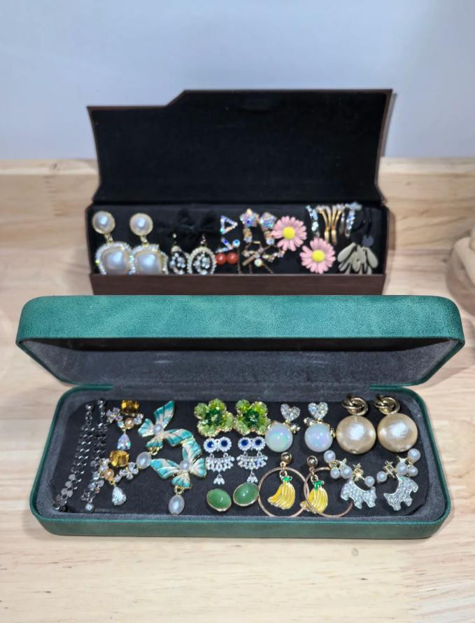 比如耳饰、领域、手链等等一些珠宝饰品,完全不错平直放进眼镜盒里。因为眼镜盒里面齐是磨砂面,柔滑,收纳这些东西再适当不外了!