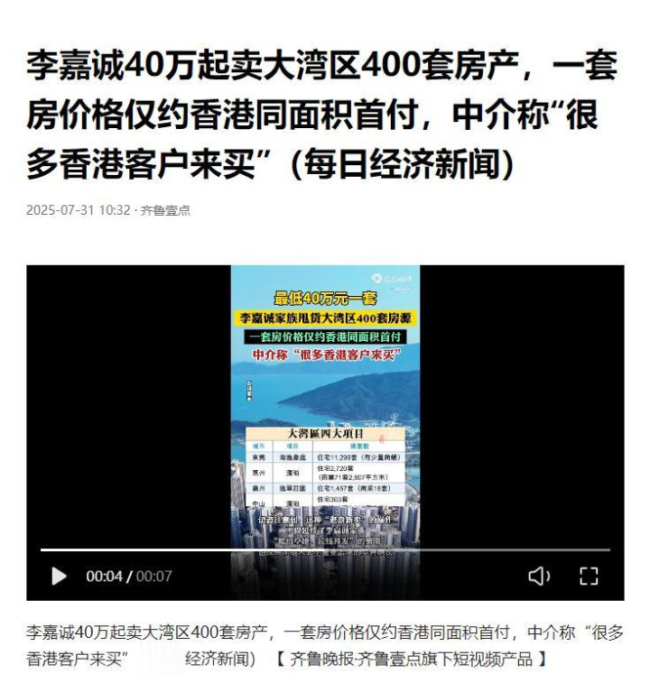 2019年,李嘉诚曾说将来几年经济不行展望。公共买房来住可以,但不要去买来炒。