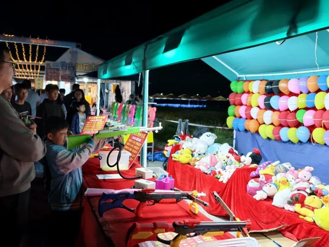 一旁的儿童游乐区相同淆乱,执娃娃、射击等游乐项当今,亲子家庭排起小队,欢笑声连三接二。