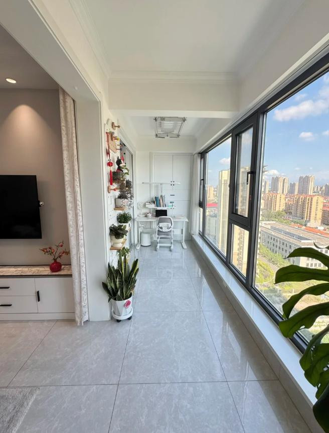 更大的阳台,不错引更多光芒进来,转换客厅的光芒氛围,提供多少许“呼吸感”和收纳空间。