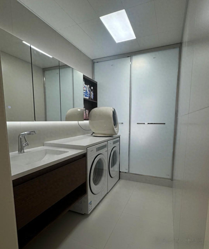 刚装的时辰,装修师父还用余晖瞟我,“洗衣机最佳放阳台,否则卫生间容易潮”。但说句真心话,我家那卫生间够长,一边洗脸刷牙的时辰,一边就能平直把一稔放进洗烘机,都毋庸绕路。冬天洗完澡平直把换下的厚外衣塞进去,洗、烘一气呵成,毋庸隔着客厅拎到阳台,也毋庸像以前那样走来走去捞袜子。要真遭遇回南天、漆黑天,这决定太提拔东说念主了。而况卫生间阿谁下水地漏,洗完一稔滴出来的残水,顺带一脚踢夙昔就擦了,省下一摊泥点子。住了半年,没一次后悔。