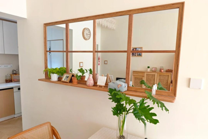 没猜测我家最被邻居拍照的点,是餐厅的那面“假窗户”——其实即是一块镜子加细边木条框出来的。原先墙上太单调,放画嗅觉没存在感。装了假窗户,空间被“拉大”,餐桌边那点反光止境酣畅。一又友来家里吃饭第一句都在问怎么装的,好几个逼问我尺寸和材料。其实淘宝采购,量好比例,东说念主狠点我方一天就能科罚。搭配绿植、木质吊挂板,打擦过的木蜡油味,一忽儿温馨不少。小空间、暗厅止境合适这套路。