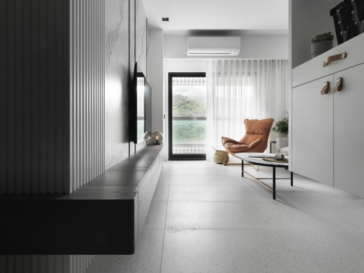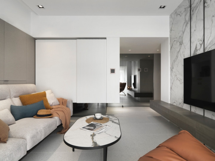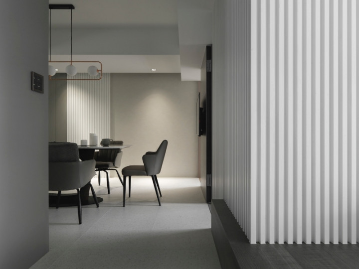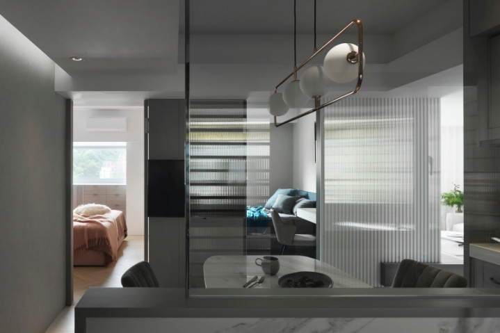 本案为老屋革命住宅,谋略以「色调行为心理场域」为中枢命题,跳脱单一作风框架,转而从色调心理与材质触感切入,重塑居住者与空间之间的感知联系。全案以低满盈莫兰迪灰阶为基底,透过玻璃、金属与石材的层层铺陈,再行梳理老屋落空的动线与采光条目,并借由视野轴线与端景节点的安排,使空间在感性轨范中保有心理温度,权臣改善原先阻滞、晦暗的居住情景。