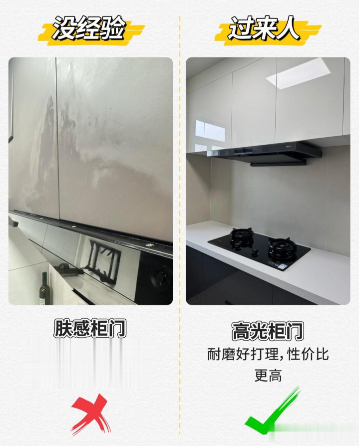 柜门推选选高光柜门,选肤感柜门天然看着更高档好意思不雅。然则容易留印章。