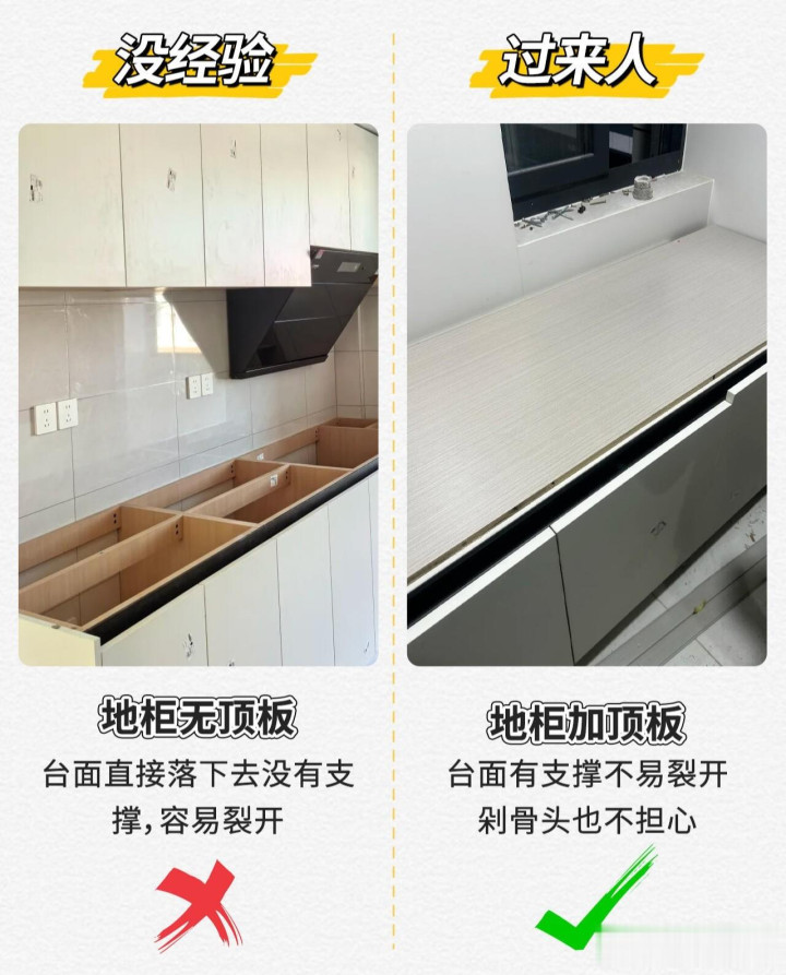地柜加顶板天然会贵少量,然则更悠闲,不必惦记台面塌陷开裂。