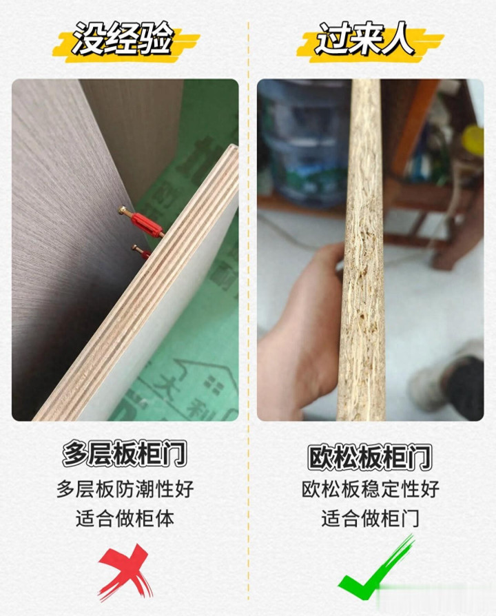 柜体接收多层板,防潮性好,柜门接收欧松板,露出性更好。