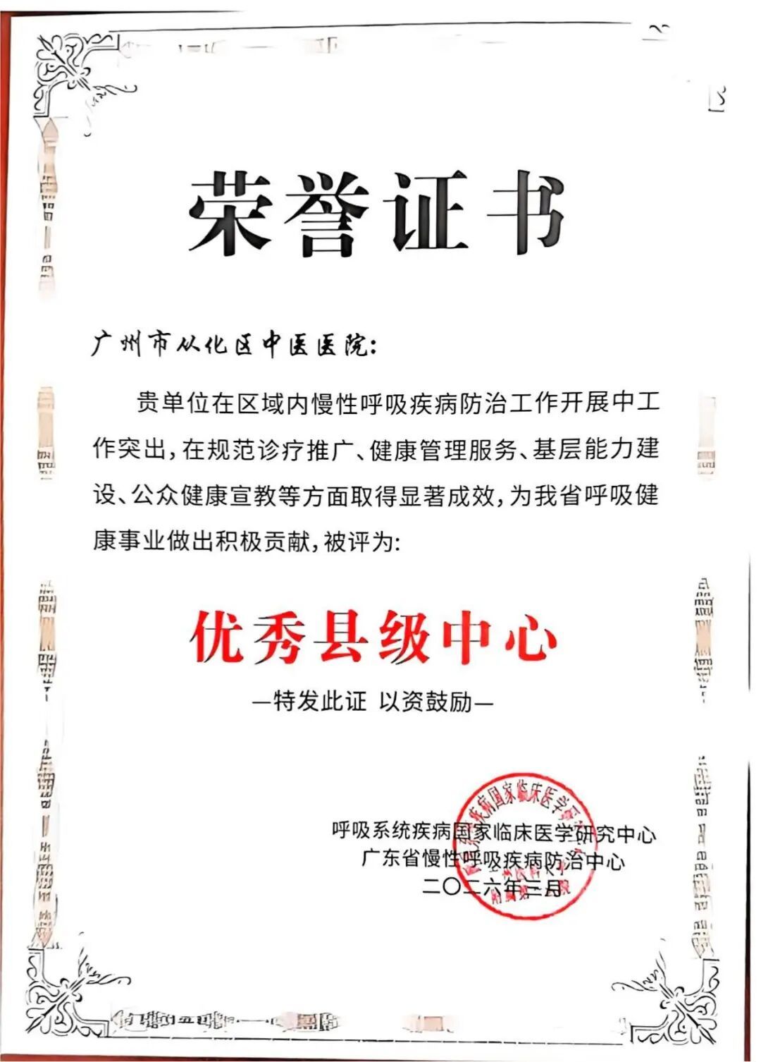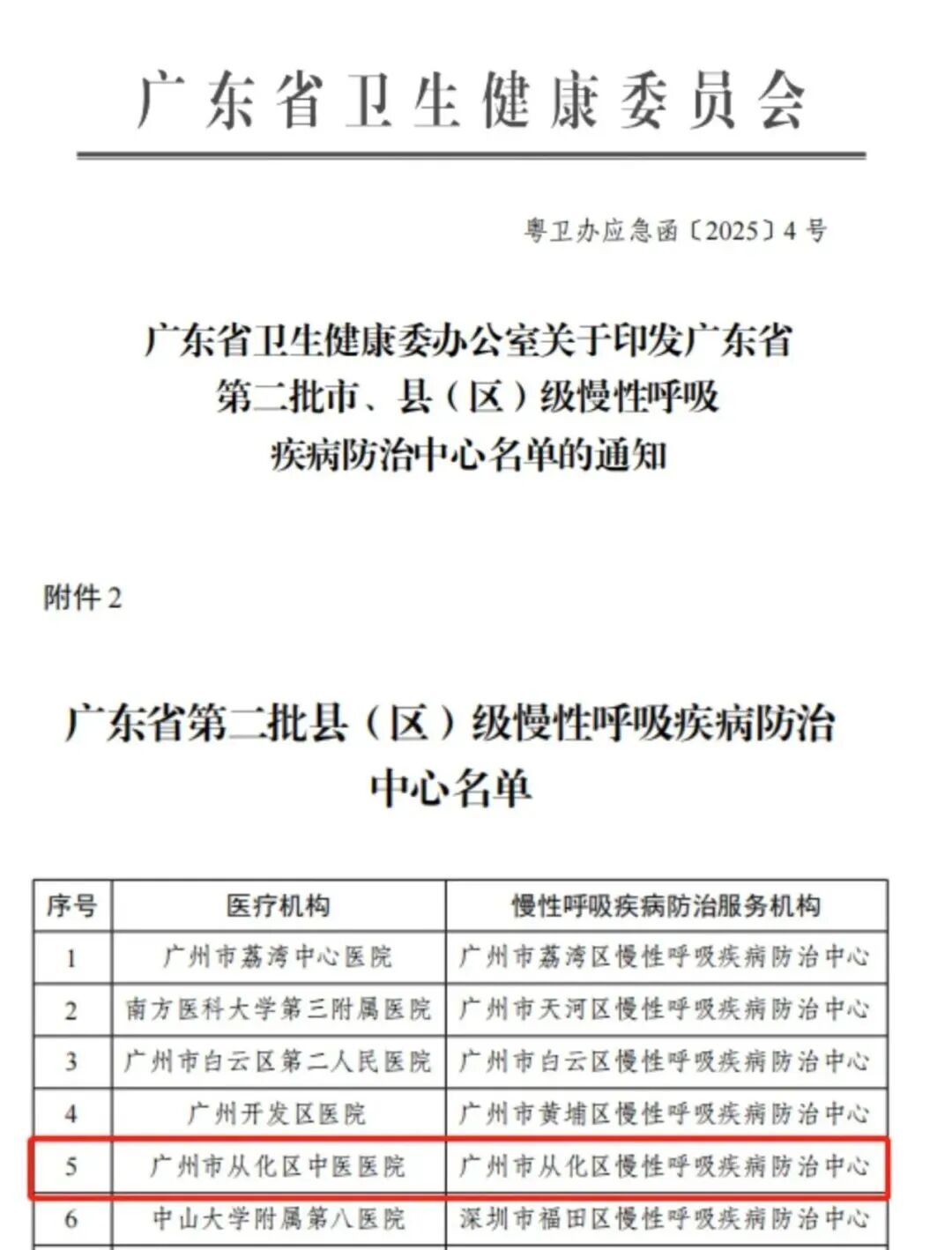 2025年3月,广东省卫生健康委员会发布了《广东省第二批市、县(区)级慢性呼吸疾病防治中心名单的见告》,从化区中医病院被援助为广州市从化区慢性呼吸疾病防治中心。这不仅是身份的回荡,更是背负的担当。