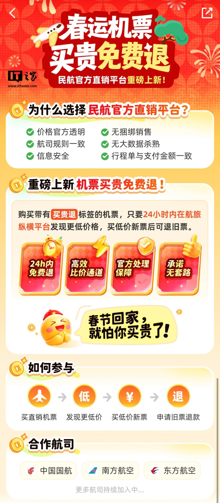 IT之家从官方先容页面获悉,该行状已障翳国航、南航、东航三大航,后续还将逐渐彭胀至更多航空公司。