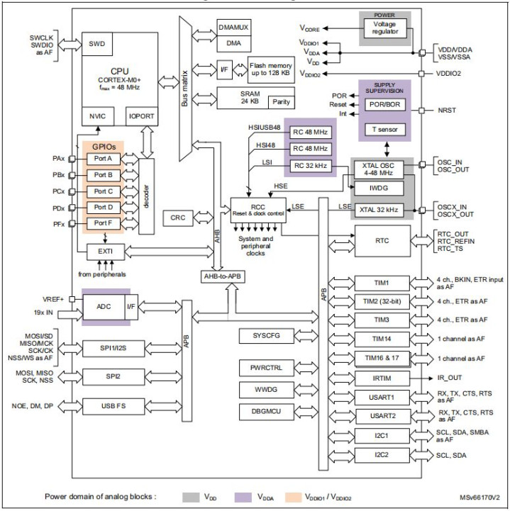 • 内核:Arm®32位Cortex®-M0+ CPU,频率可达48MHz